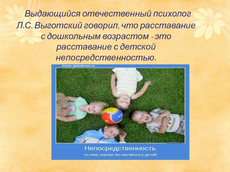 Л.С. Выготский говорил, что расставание с дошкольным возрастом - это расставание с детской непосредственностью.