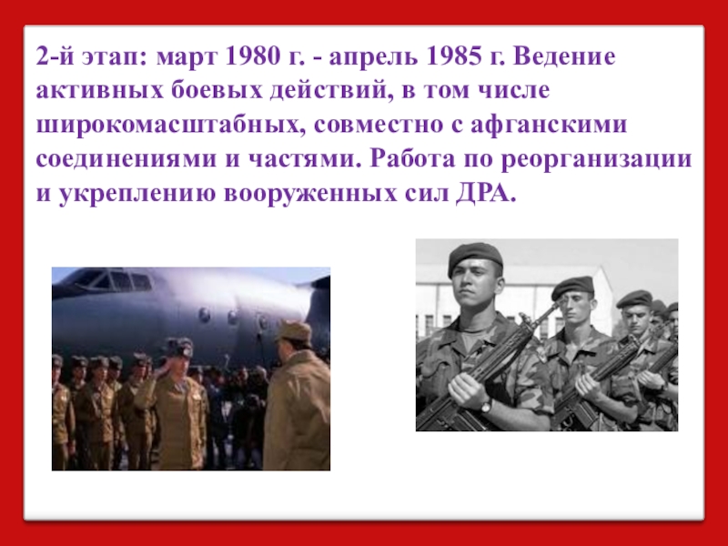 Слайд 92-й этап: март 1980 г. - апрель 1985 г. Ведение активных боевых действий, в