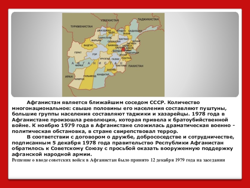 Слайд 2 Афганистан является ближайшим соседом СССР. Количество