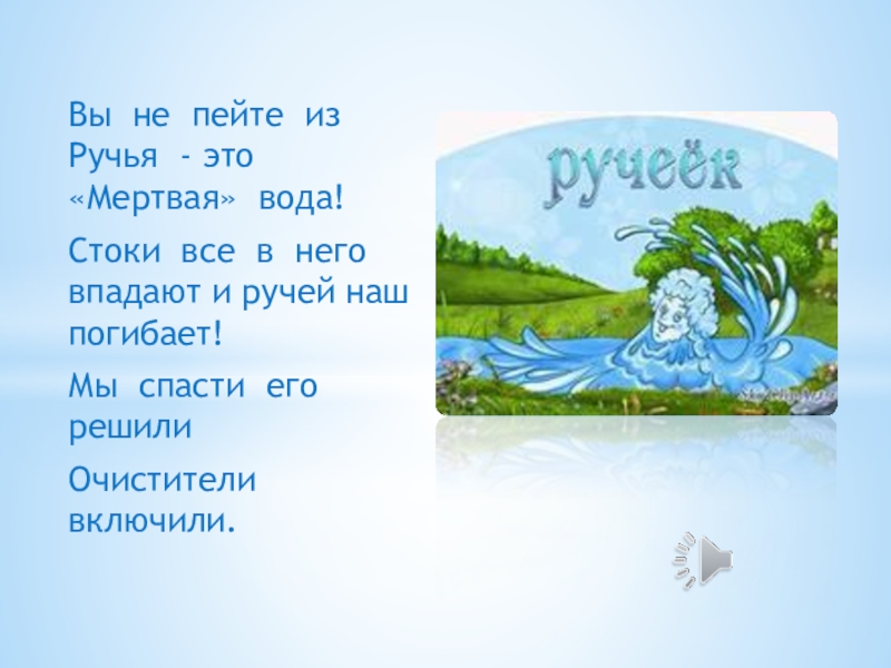 Слайд 6Вы не пейте из Ручья - это «Мертвая» вода!