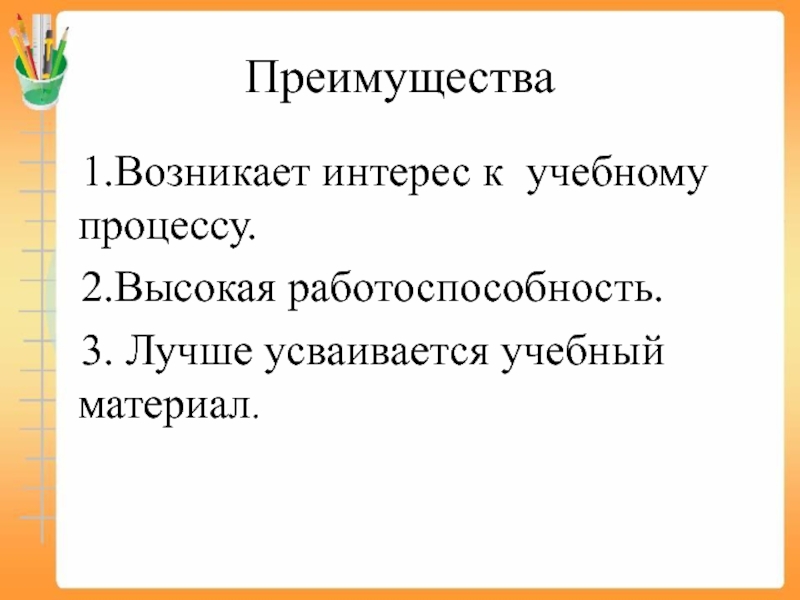 * Учителю необходимо обучать ребят деятельности, умению ставить цель, организовывать свою деятельность для её достижения и оценивать результат своей деятельности, что невозможно без развития познавательного интереса.