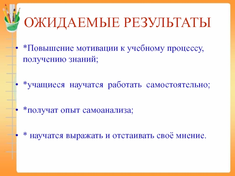 Слайд 7ОЖИДАЕМЫЕ РЕЗУЛЬТАТЫ
