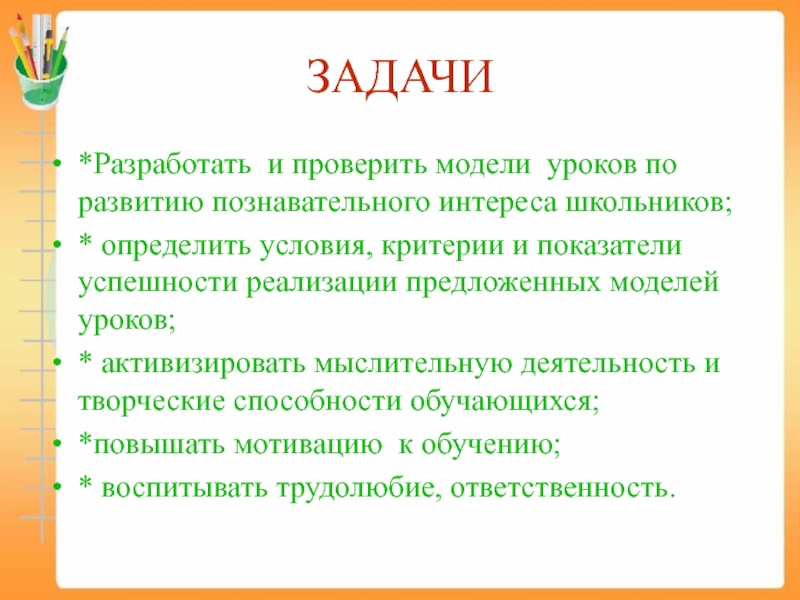 *Разработать и проверить модели уроков по развитию познавательного интереса школьников;