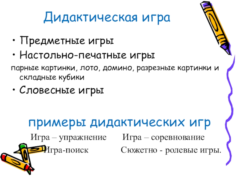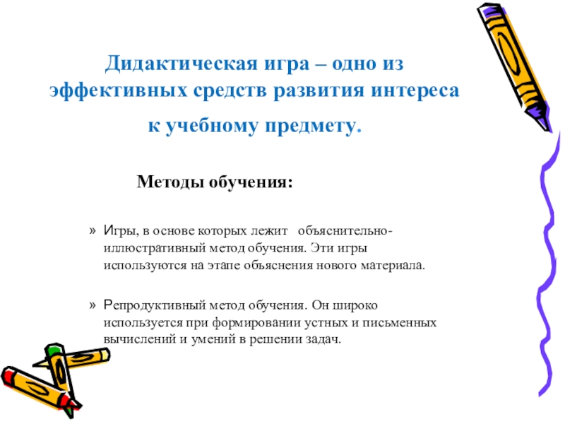 Игры, в основе которых лежит объяснительно- иллюстративный метод обучения. Эти игры используются на этапе объяснения нового материала.