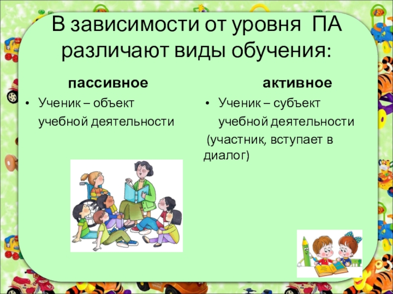 Эффективность обучения находится в прямой зависимости от уровня активности учащихся.