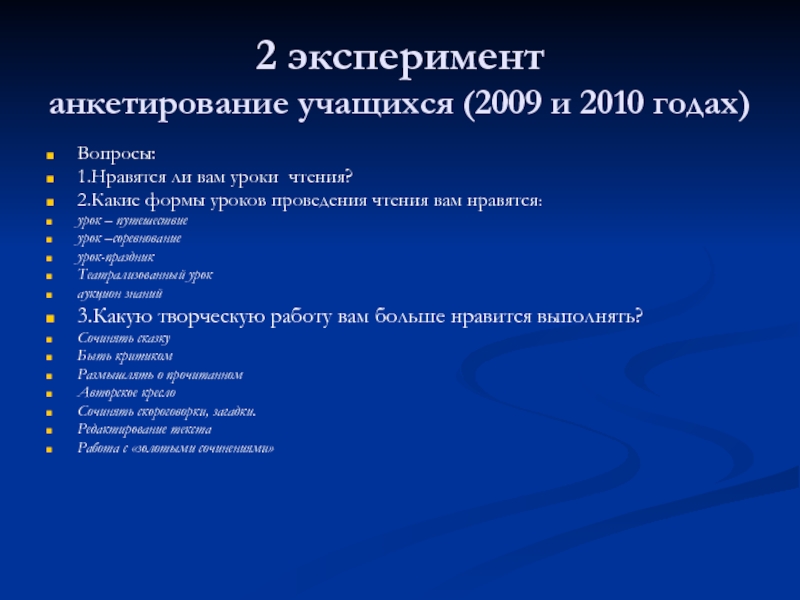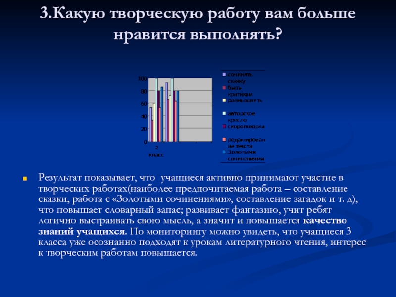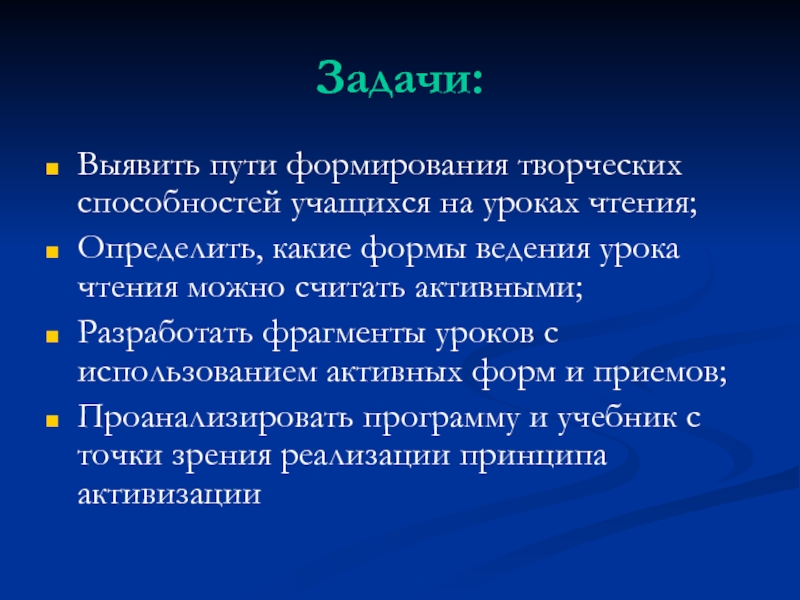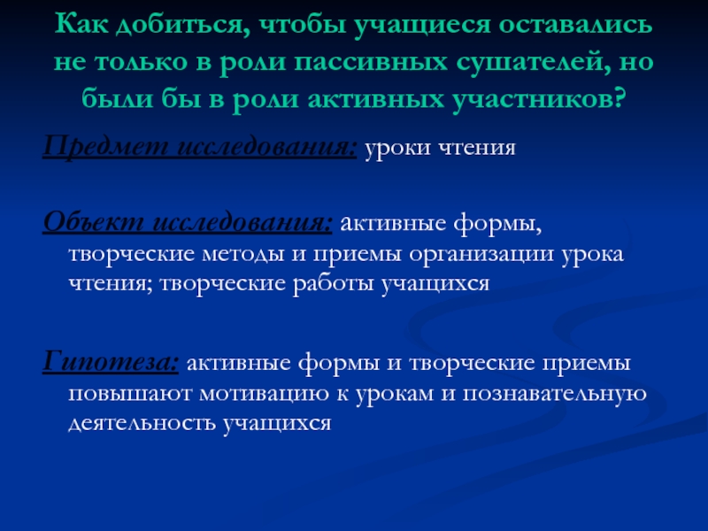 Объект исследования: активные формы, творческие методы и приемы организации урока чтения; творческие работы учащихся
