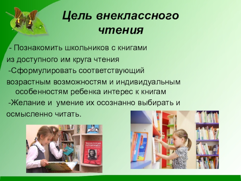 Слайд 7Цель внеклассного чтения
