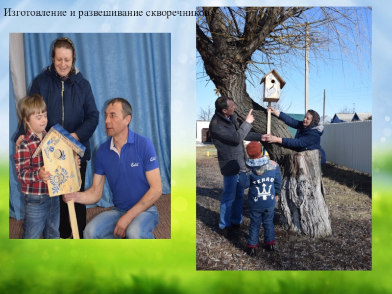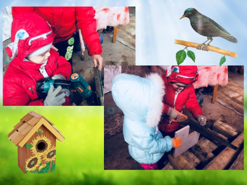 Слайд 12Подготовительные к школе группы – изготовили совместно с родителями скворечники, развесили