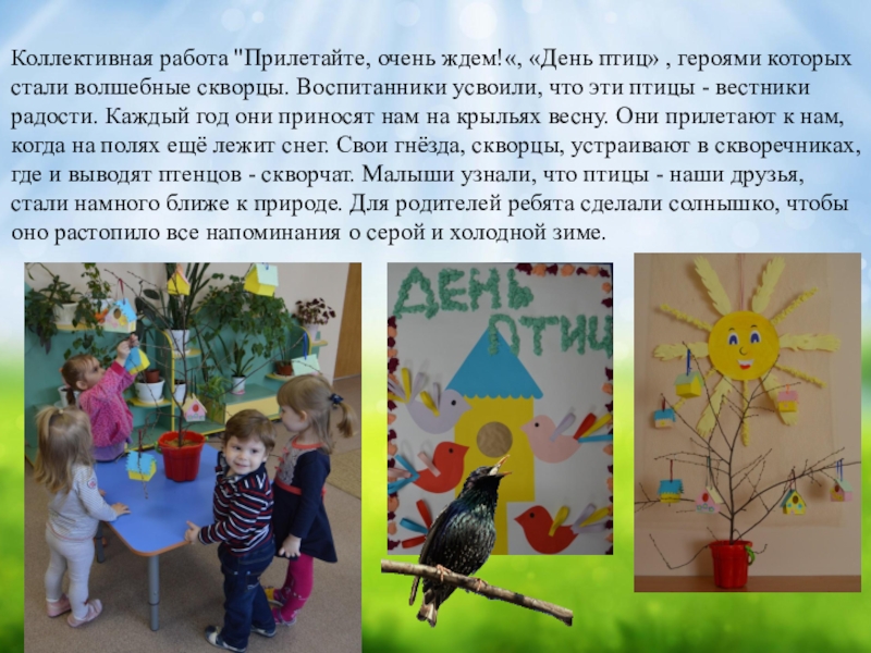 Слайд 4Коллективная работа "Прилетайте, очень ждем!«, «День птиц» , героями которых стали