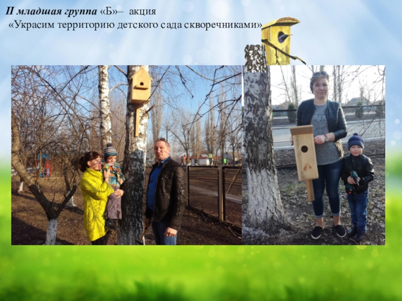 Слайд 7II младшая группа «Б»– акция «Украсим территорию детского сада скворечниками»