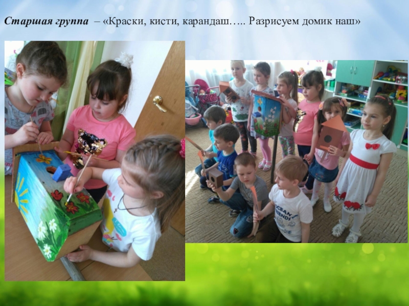 Слайд 11Старшая группа – «Краски, кисти, карандаш….. Разрисуем домик наш»