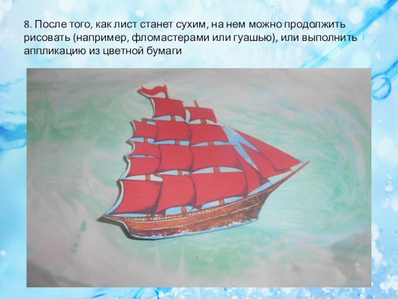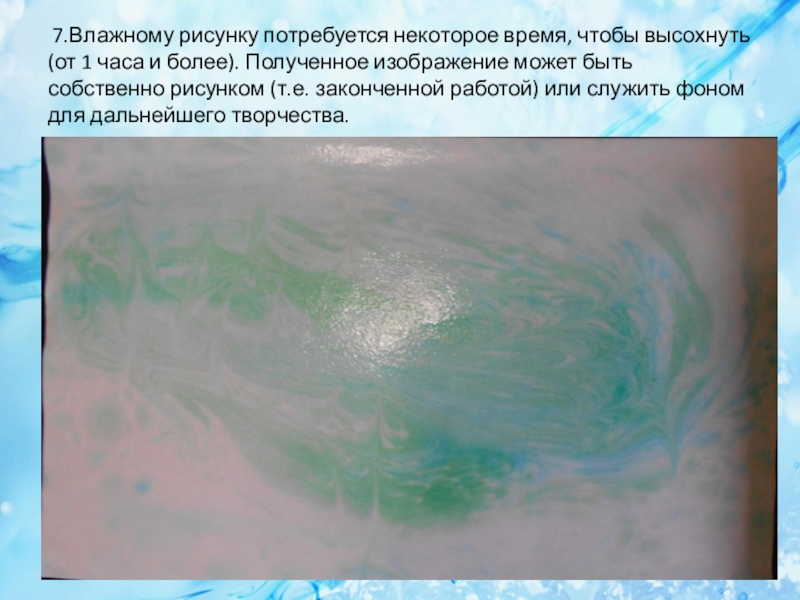Слайд 12 7.Влажному рисунку потребуется некоторое время, чтобы высохнуть (от 1 часа