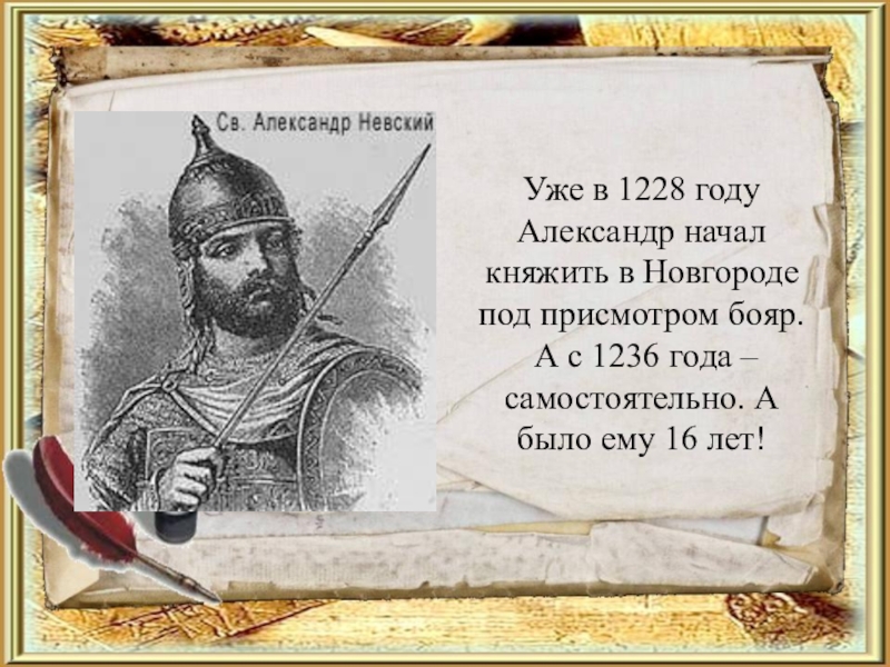 Слайд 7Уже в 1228 году Александр начал княжить в Новгороде под присмотром