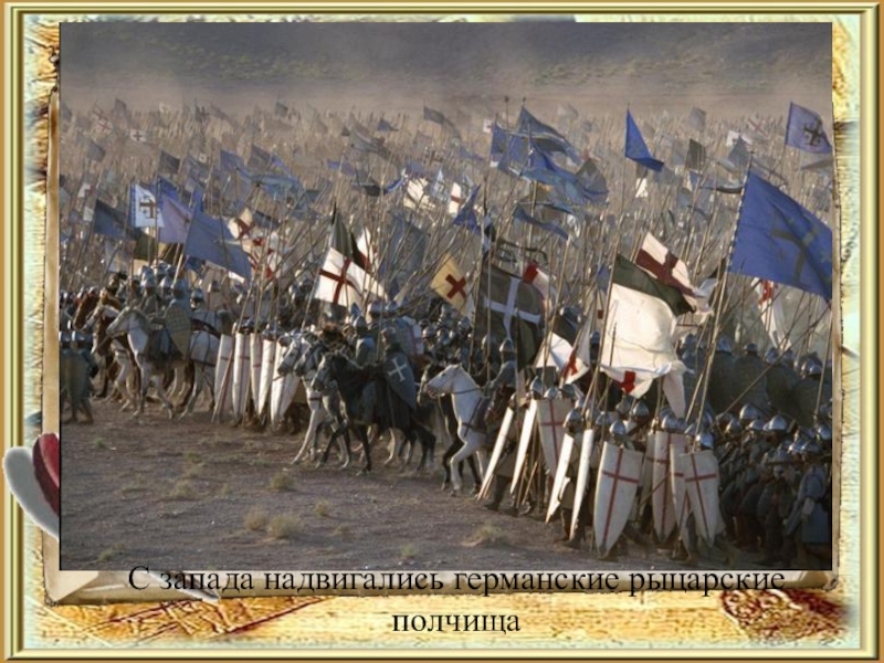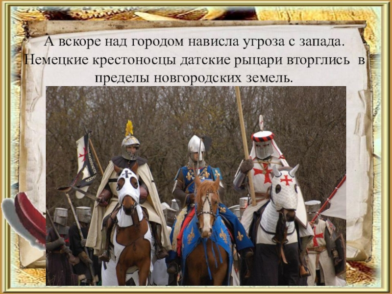 Слайд 16А вскоре над городом нависла угроза с запада. Немецкие крестоносцы датские