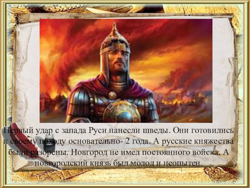 Слайд 12Первый удар с запада Руси нанесли шведы. Они готовились к своему