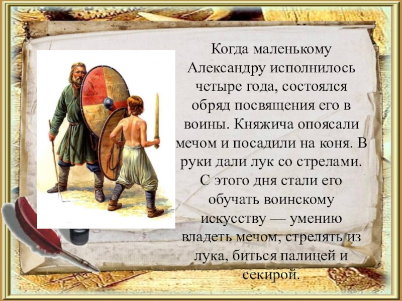 Слайд 5Когда маленькому Александру исполнилось четыре года, состоялся обряд посвящения его в