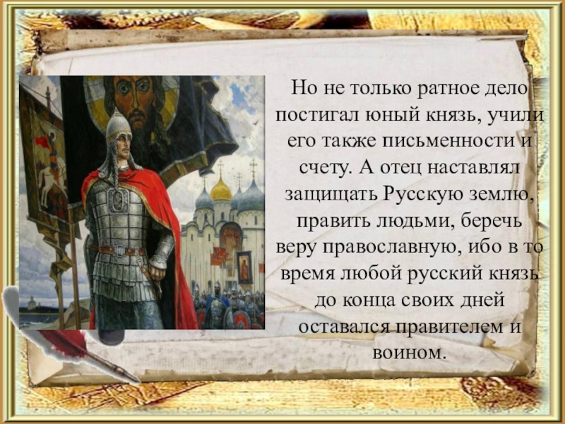 Слайд 6Но не только ратное дело постигал юный князь, учили его также