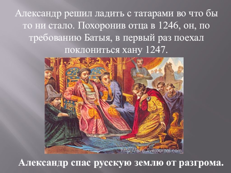 Слайд 20Александр решил ладить с татарами во что бы то ни стало.
