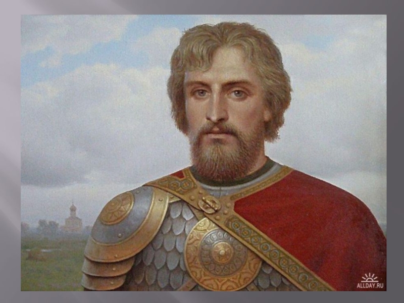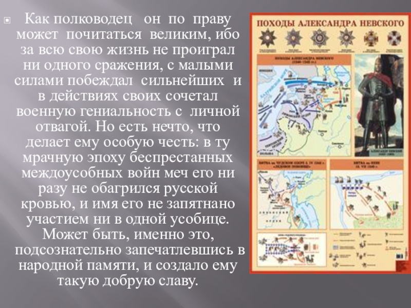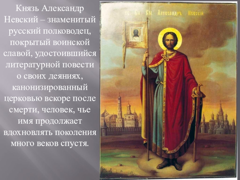 Слайд 24Князь Александр Невский – знаменитый русский полководец, покрытый воинской славой, удостоившийся