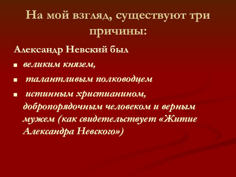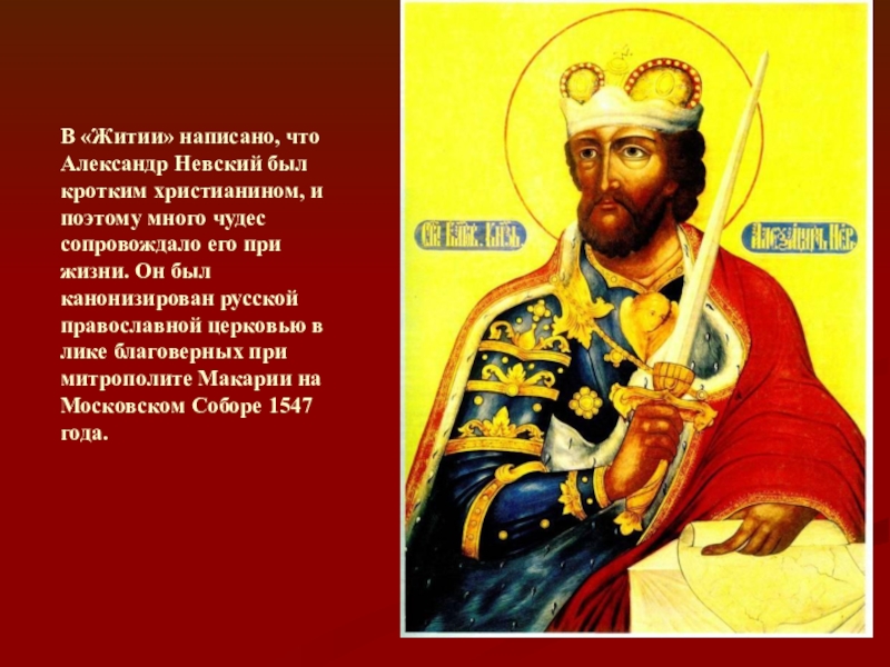 Слайд 24В «Житии» написано, что Александр Невский был кротким христианином, и поэтому