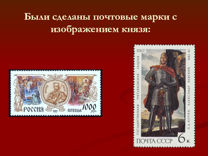 Слайд 11Были сделаны почтовые марки с изображением князя: