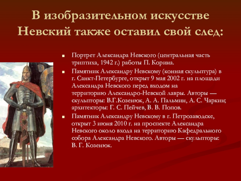 Слайд 13В изобразительном искусстве Невский также оставил свой след: