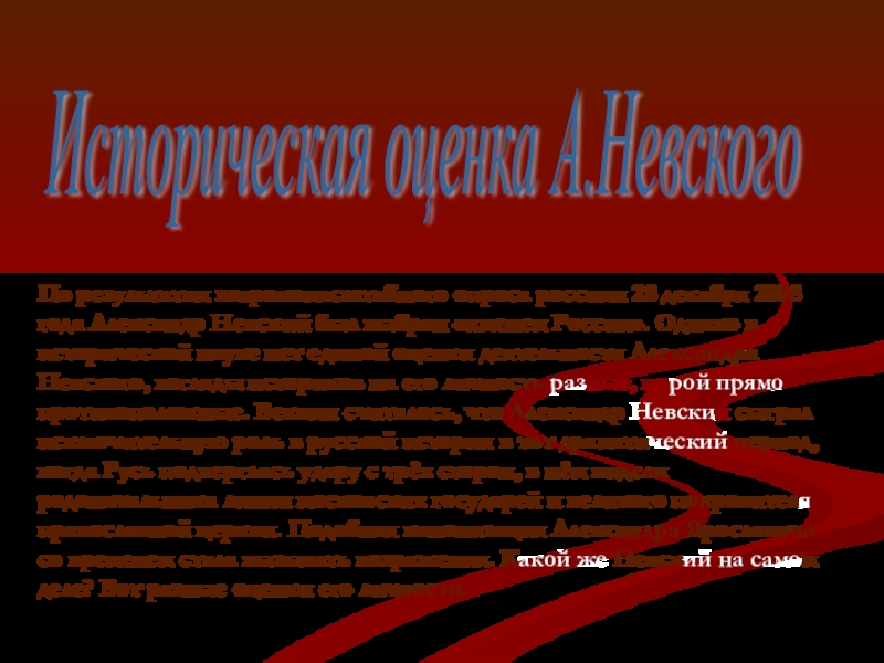 Слайд 7Историческая оценка А.Невского