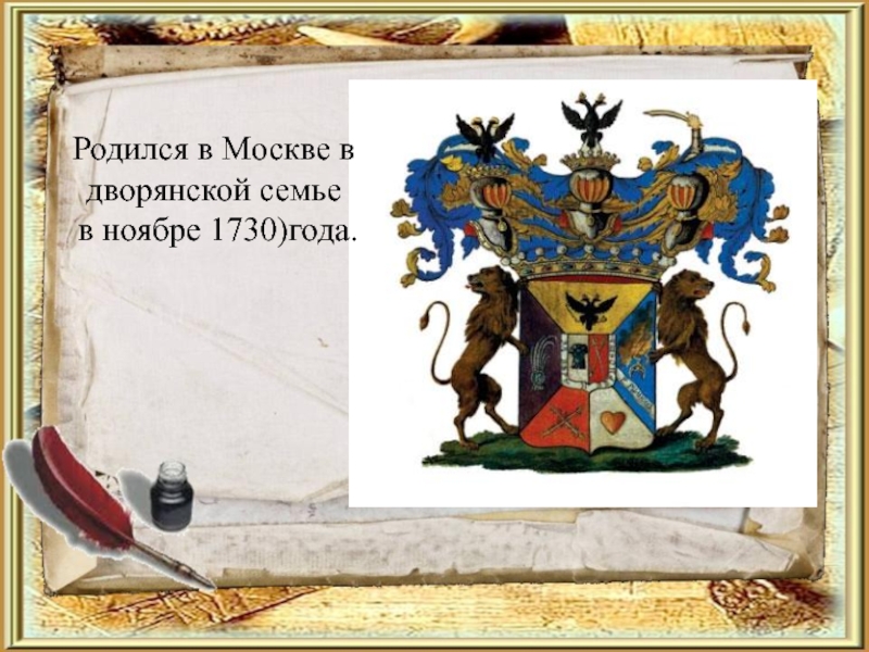 Слайд 4Родился в Москве в дворянской семье