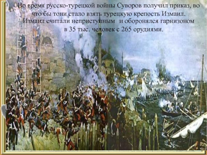 Во время русско-турецкой войны Суворов получил приказ, во что бы
