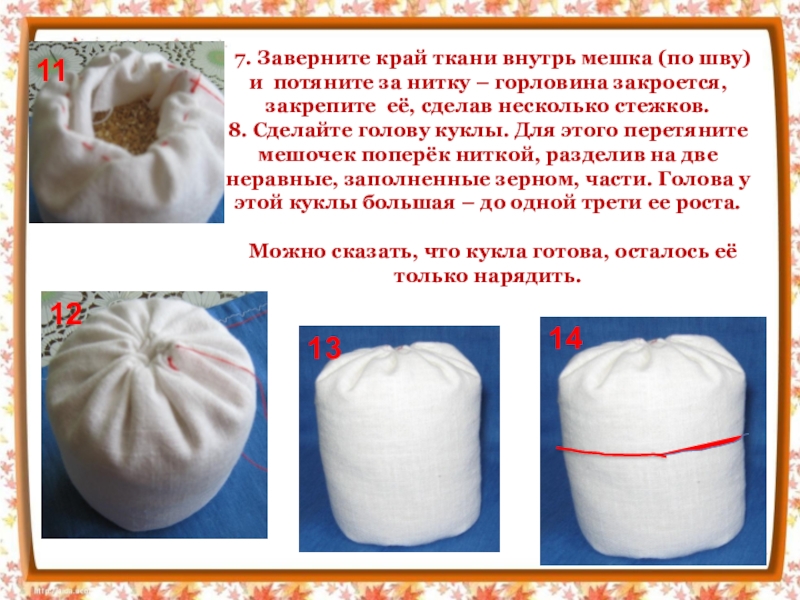 горловину мешка по кругу, нитку не обрывайте.