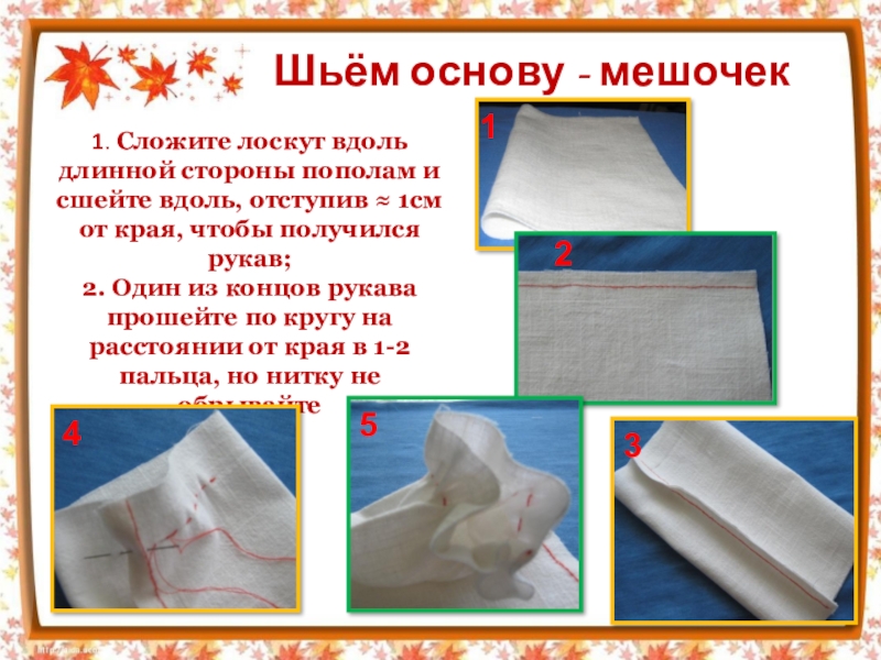 5. Выверните мешок, чтобы шов и узел на дне