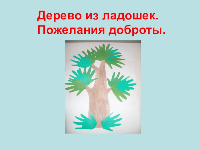 Слайд 26Дерево из ладошек. Пожелания доброты.