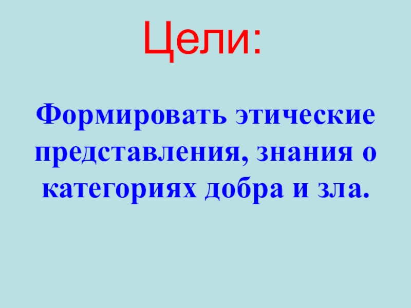 Формировать этические представления, знания о категориях добра и зла.