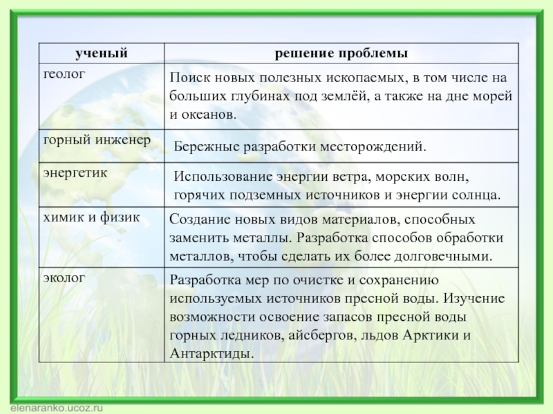 Разработка мер по очистке и сохранению используемых источников пресной воды. Изучение возможности освоение запасов пресной воды горных ледников, айсбергов, льдов Арктики и Антарктиды.