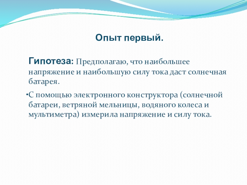 Гипотеза: Предполагаю, что наибольшее напряжение и наибольшую силу тока даст