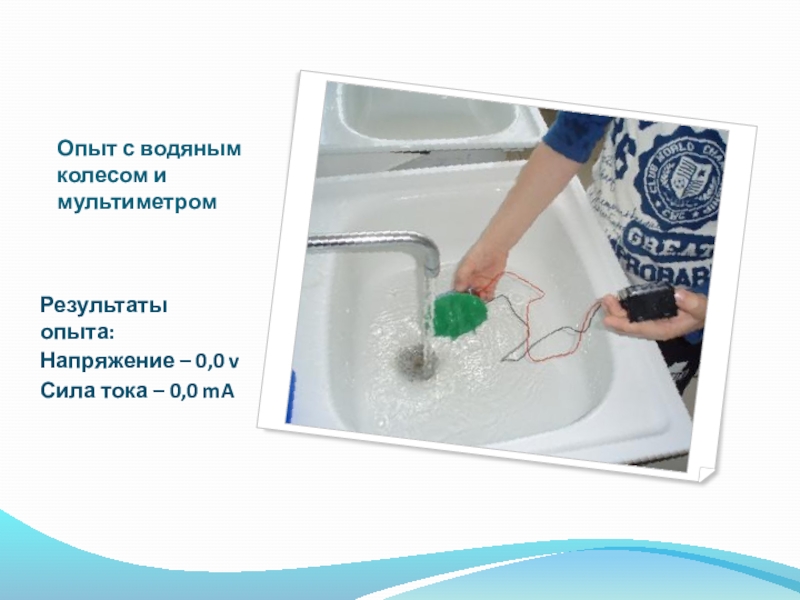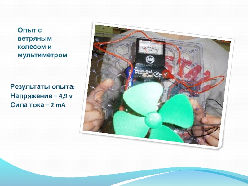 Слайд 9Опыт с ветряным колесом и мультиметром