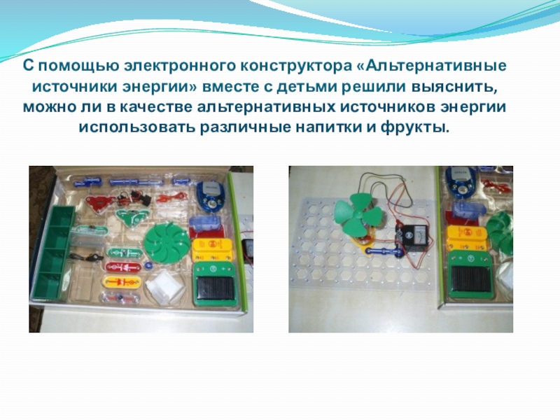 С помощью электронного конструктора «Альтернативные источники энергии» вместе с детьми решили