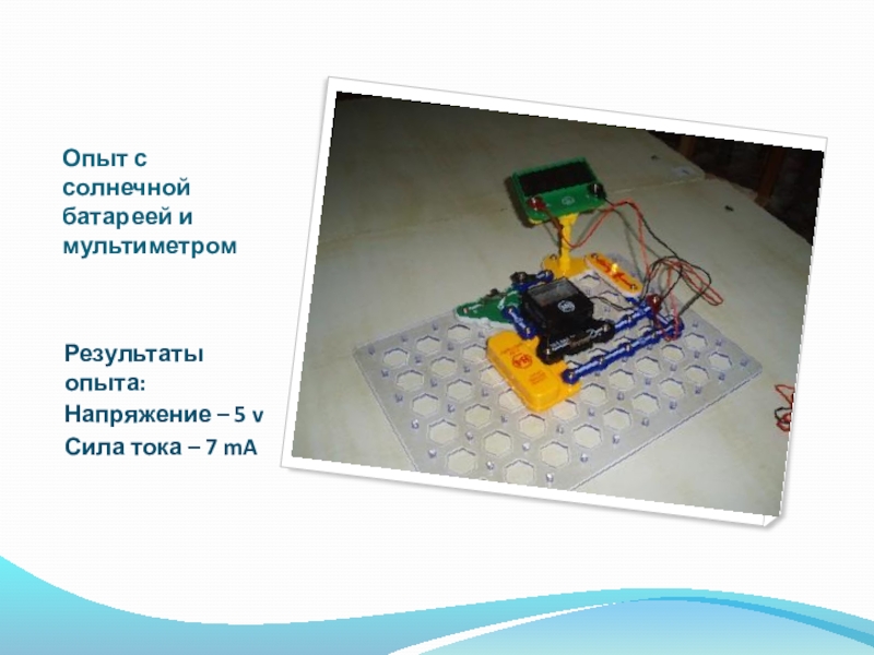 Слайд 8Опыт с солнечной батареей и мультиметром