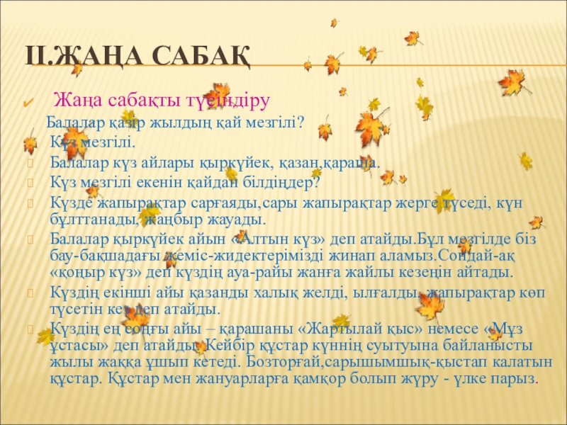 Күзгі табиғаттың әсемдігін сезініп, оны қорғай білуге тәрбиелеу