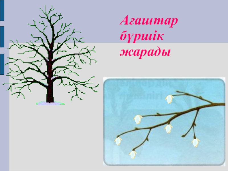 Слайд 18Ағаштар бүршік жарады