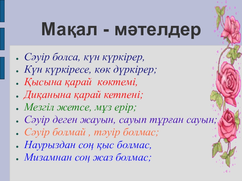Слайд 24Мақал - мәтелдер