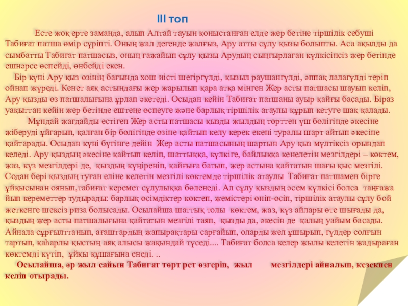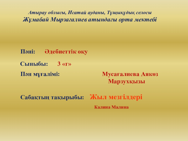 Сабақтың тақырыбы: Жыл мезгілдері