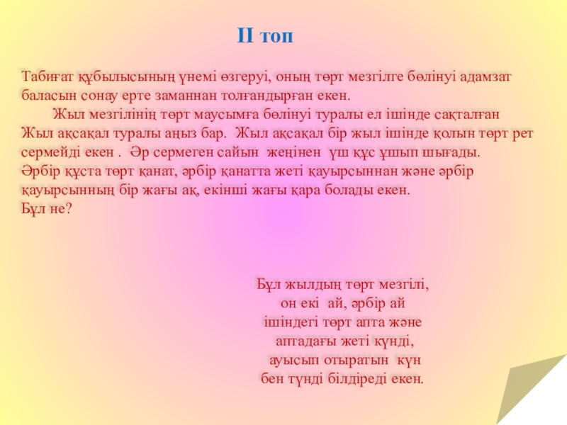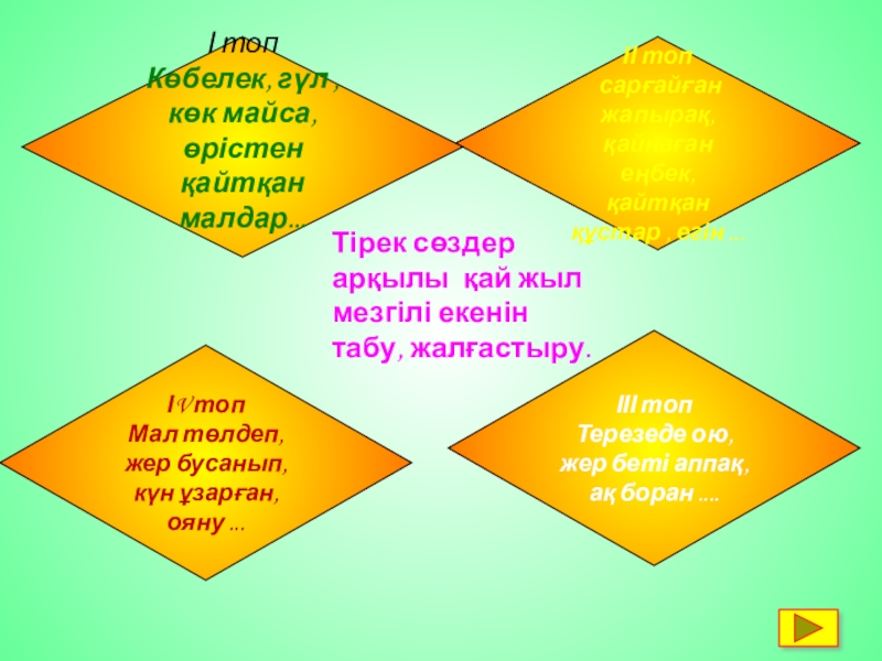 арқылы қай жыл мезгілі екенін табу, жалғастыру.