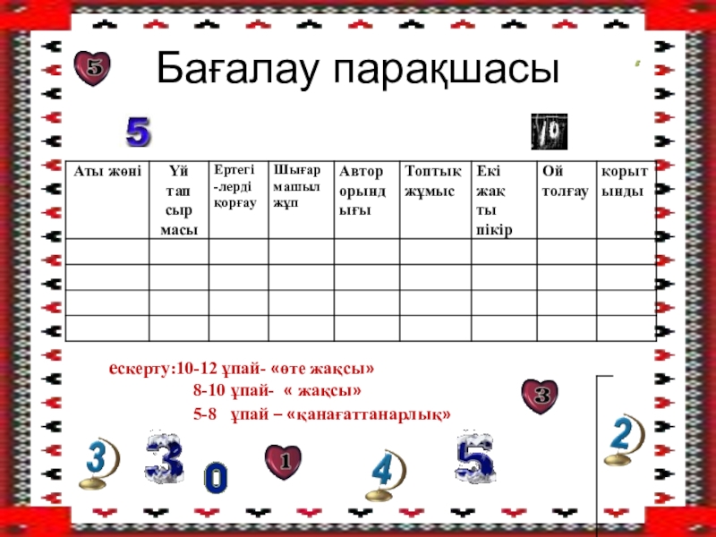 Қорытындылау. Бағалау (10мин)