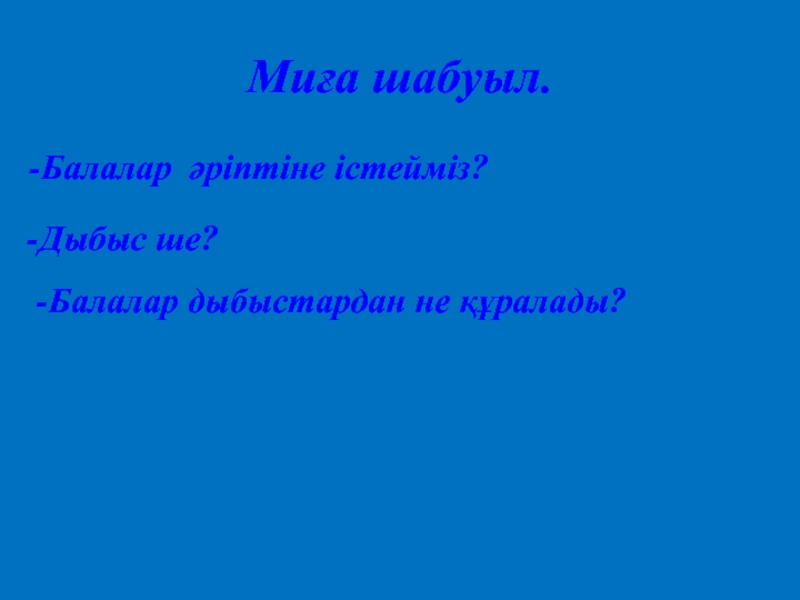 Миға шабуыл.-Балалар әріптіне істейміз?-Дыбыс ше?-Балалар дыбыстардан не құралады?
