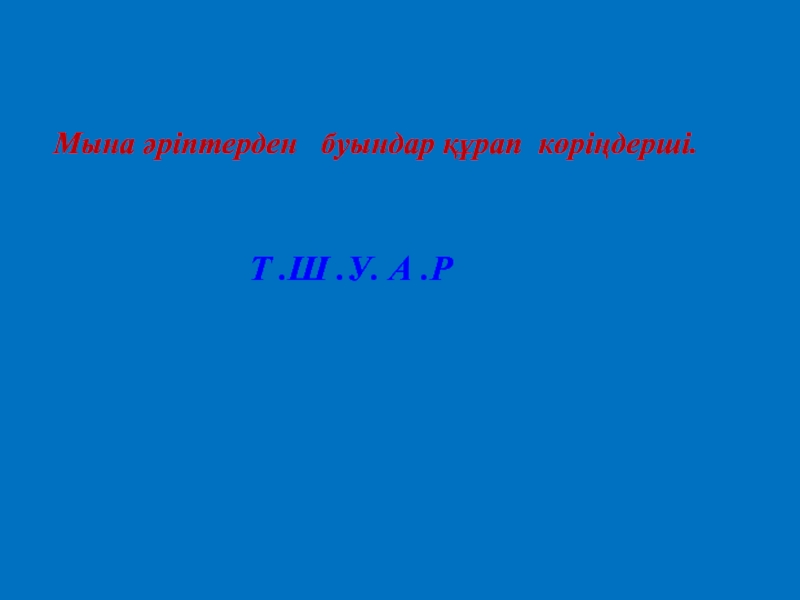 Мына әріптерден  буындар құрап көріңдерші.Т .Ш .У. А .Р