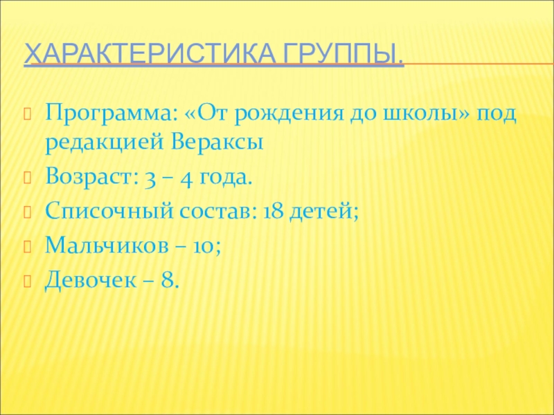 Слайд 2ХАРАКТЕРИСТИКА ГРУППЫ.