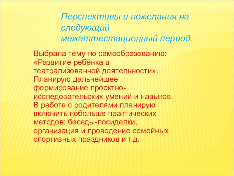 Слайд 50Перспективы и пожелания на следующий межаттестационный период.
