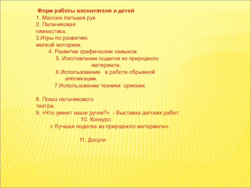 Слайд 29 Форм работы воспитателя и детей
