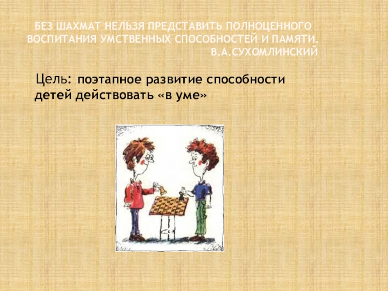 Цель: поэтапное развитие способности детей действовать «в уме»